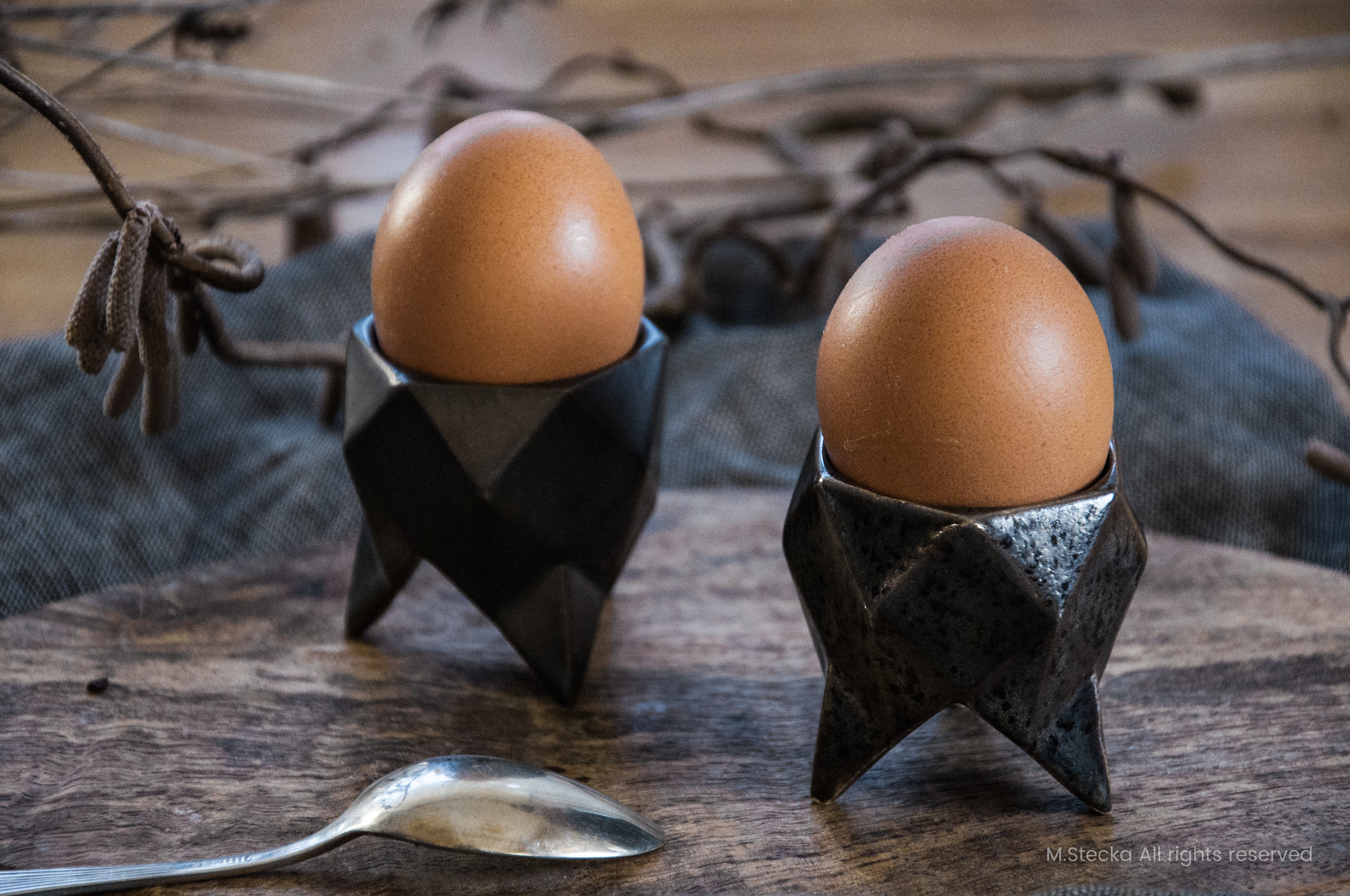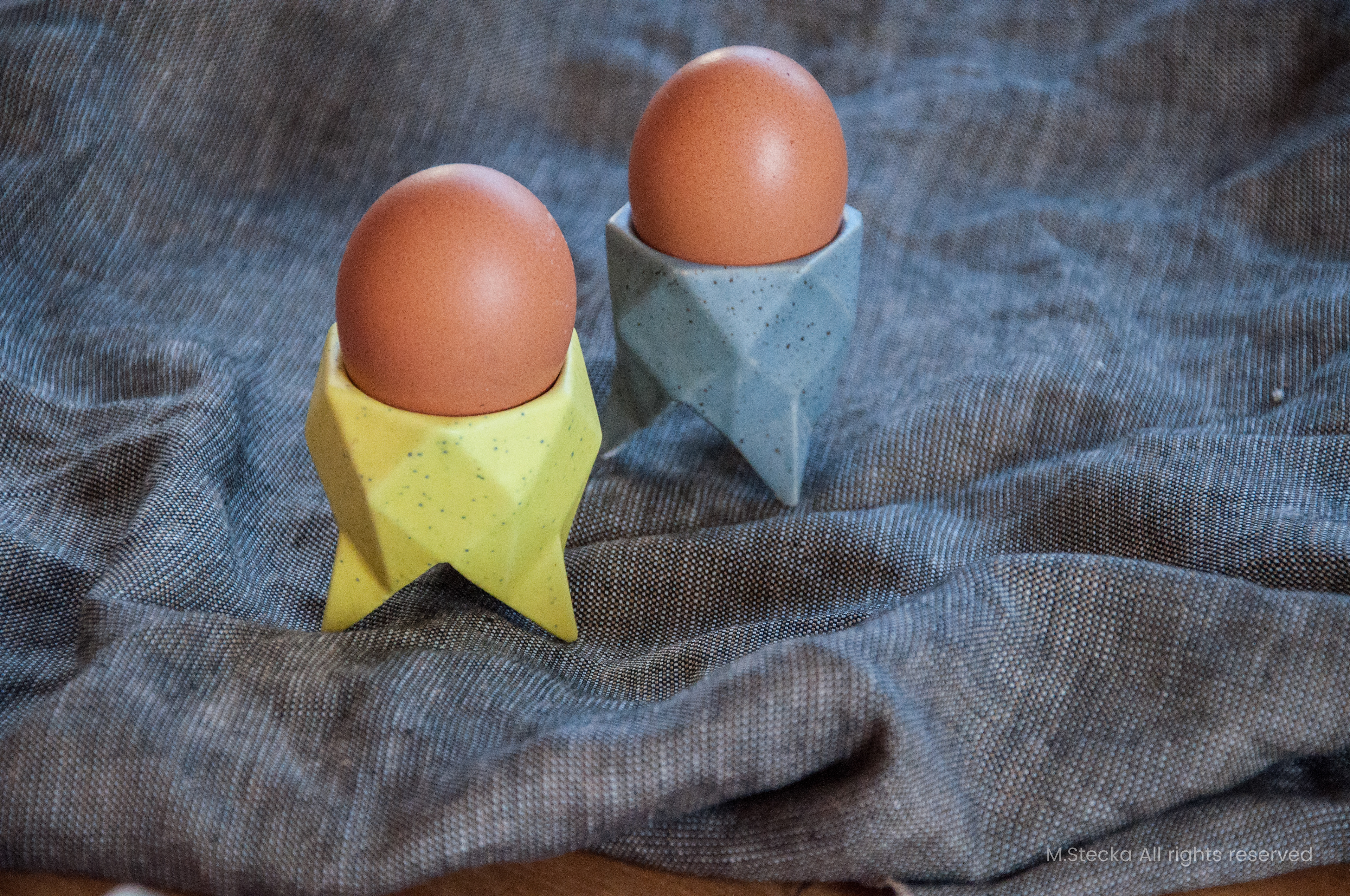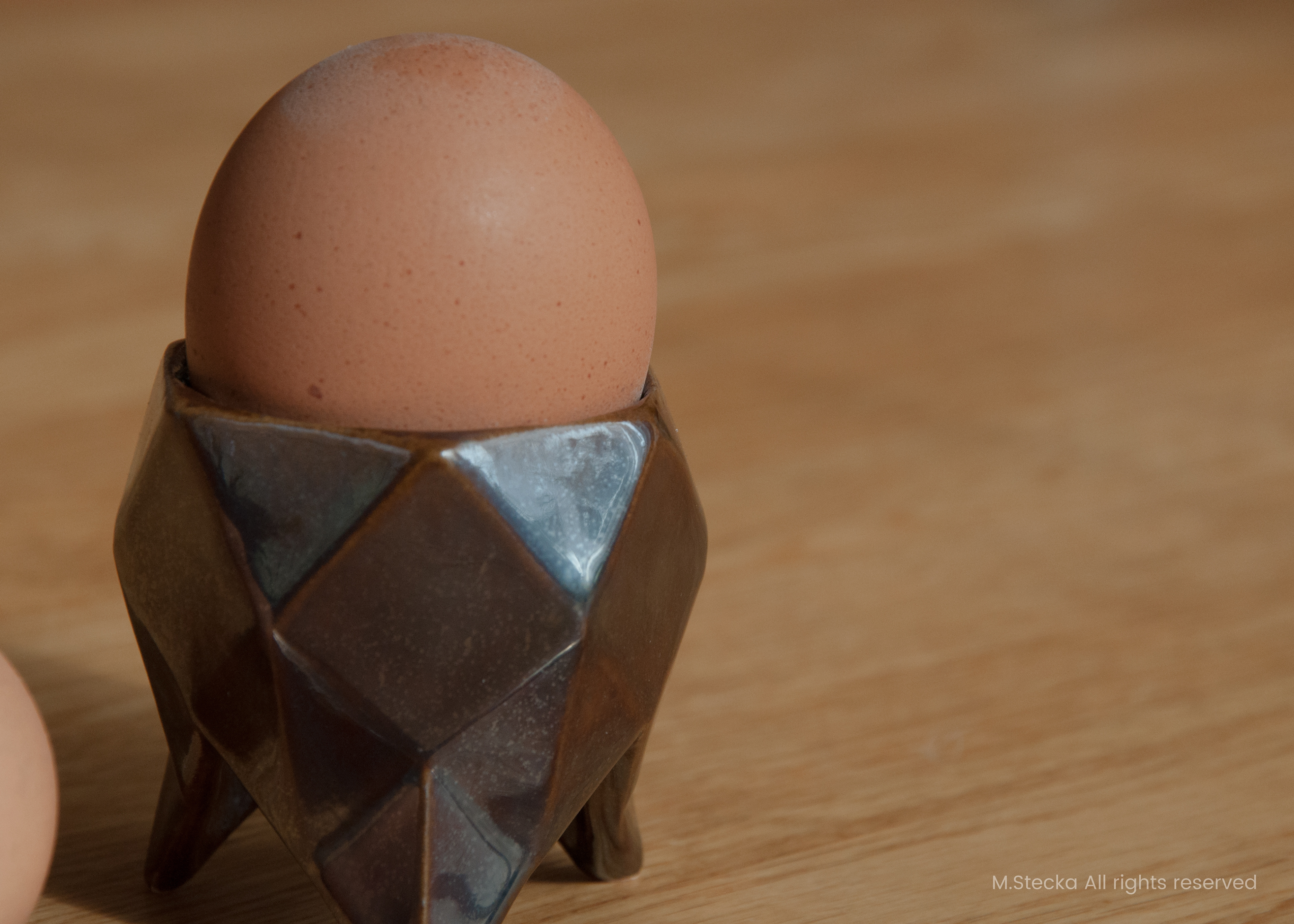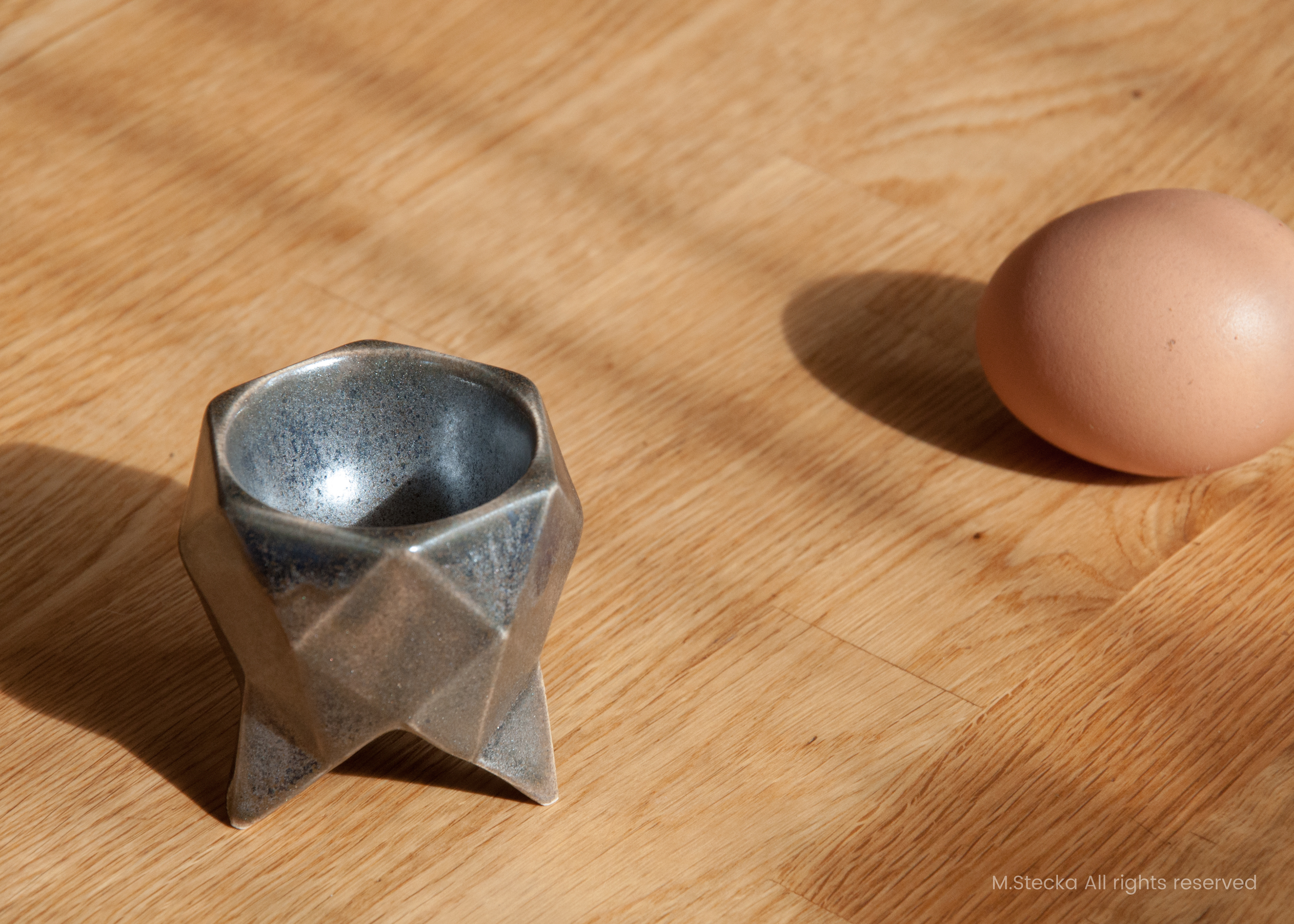 nierównym talerzu. Czara kieliszka pomieści jajko każdej wielkości. Trzy lekkie nóżki stanowią stabilną podstawę dzięki trzem punktom podparcia. Drobiazg a dodaje nowoczesnego charakteru i może być stosowany jako ozdoba stołu świątecznego.