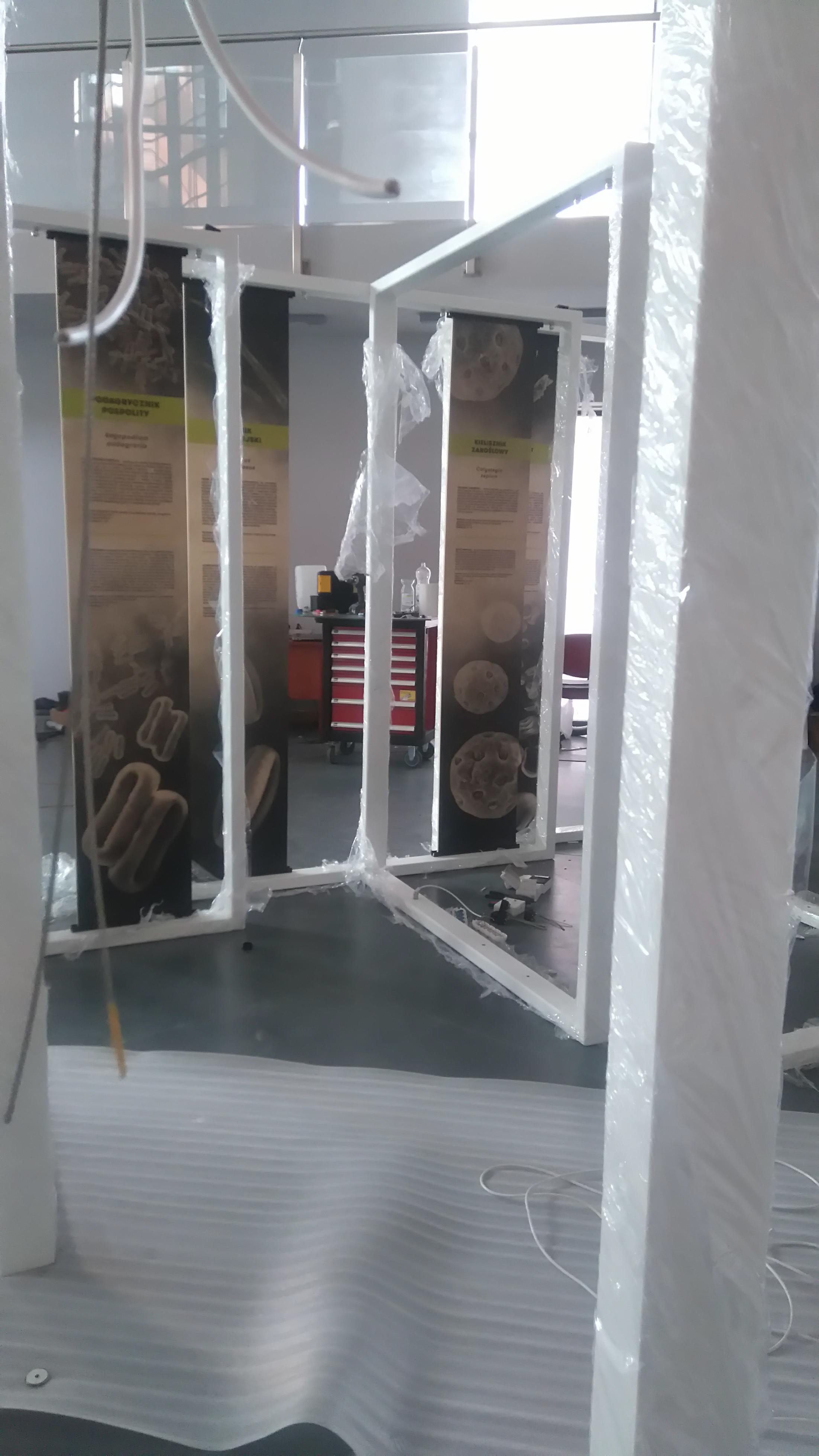 Wystawa powstawała niemalże wyłącznie na terenie EC1 więc przepracowaliśmy całość procesu tworzenia wystawy zaczynając od ogólnych koncepcji i założeń poprzez prace projektowe, wykonawstwo części stalowych, modelowanie, druk 3D, opracowanie grafik, edycja tekstów aż do "drobnych" decyzji związanych z lakierowaniem tablic czy doborem nitonakrętek. Po wielomiesięcznej CIĘŻKIEJ pracy własnymi siłami przenieśliśmy i skręciliśmy w całość wystawę dotyczącą LECIUTKICH pyłków.