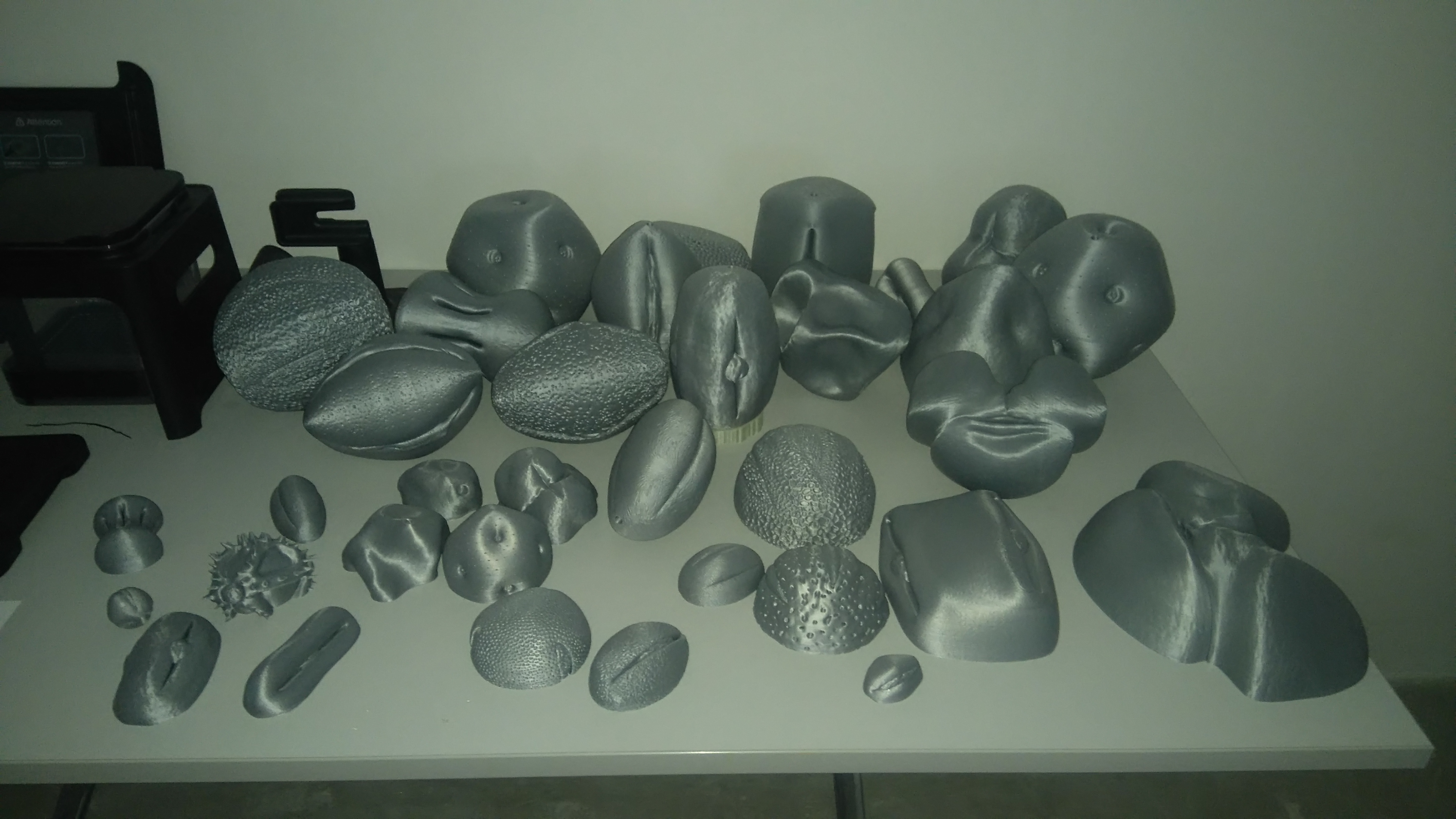 Te srebrne modele myły główną częścią mojej pracy przy tej wystawie. Każde z 20stu pyłków zostało przeze mnie zamodelowane i wydrukowane w 3D. Liczył się każdy szczegół mikroskopowych fotografii ponieważ detale budowy wpływają na funkcję każdego z pyłków. Dla przykładu pyłek świerku ma pęcherzyki z powietrzem by mógł być przenoszony przez wiatr a pyłek mniszka jest wyposażony w kolce by czepiać się odnóży owadów. Tutaj można usłyszeć więcej na ten temat.