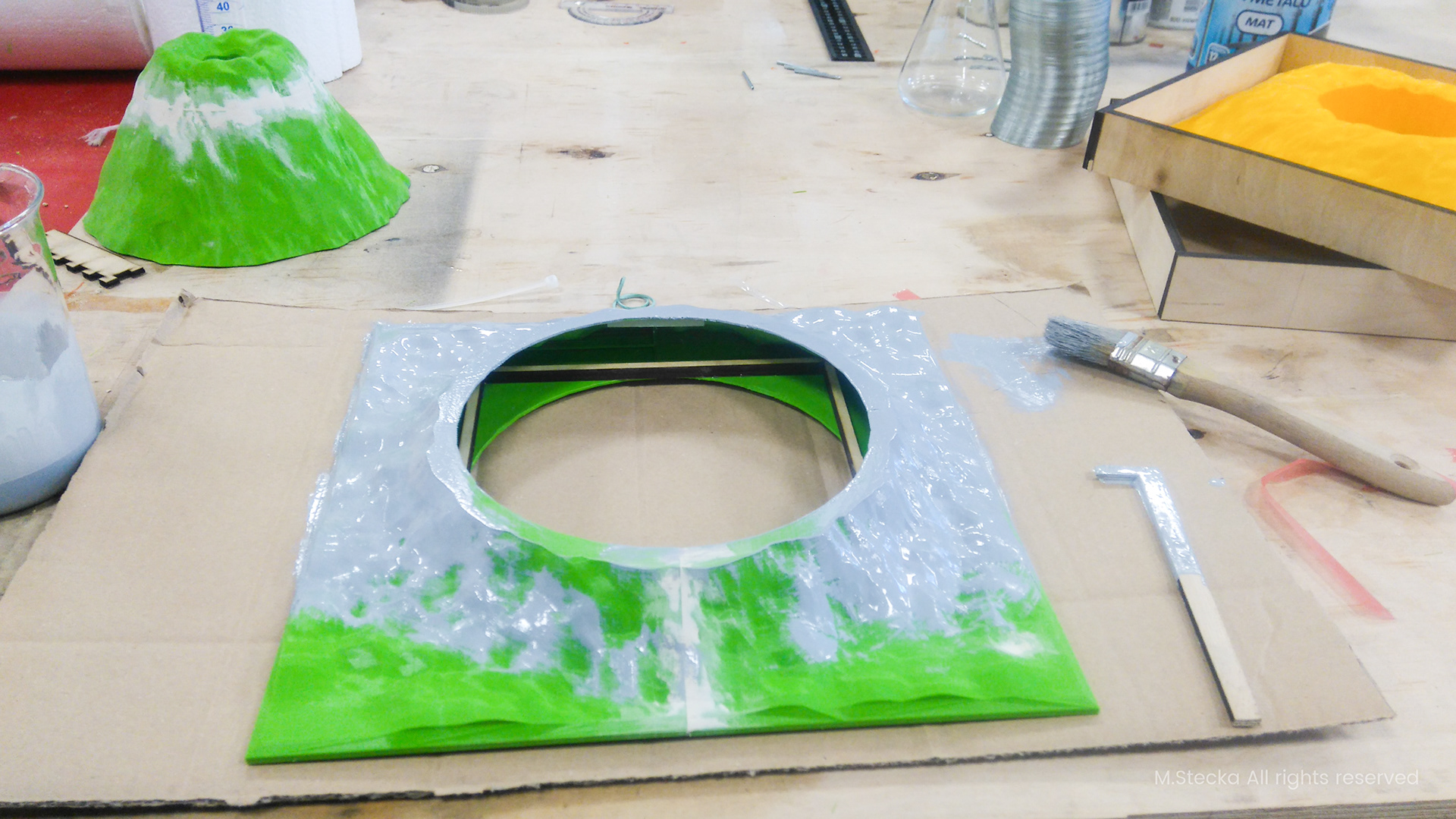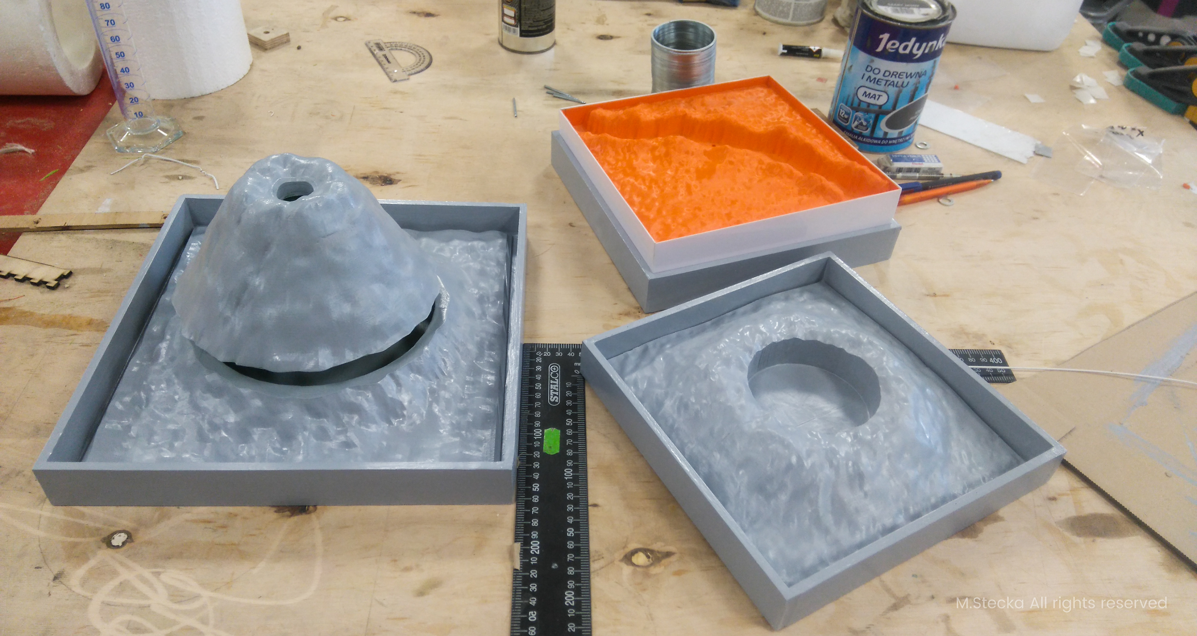 Małe makiety wulkanów powstały do prowadzenia zajęć edukacyjnych. Uczestnicy mogą dzięki prostym procesom chemicznym stworzyć małą "erupcję wulkaniczną". Trzy typy wulkanów uświadamiają dzieci jak wydobywa i rozprzestrzenia się lawa.